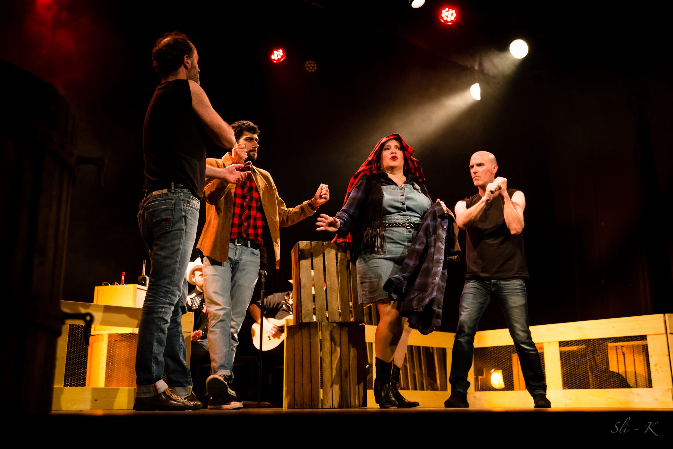 Deux équipes de 2 comédien.ne.s se retrouvent sur le ring pour rivaliser d’imagination et créer en direct live des histoires improvisées sous la houlette d’un arbitre facétieux et animé par un musicien country…