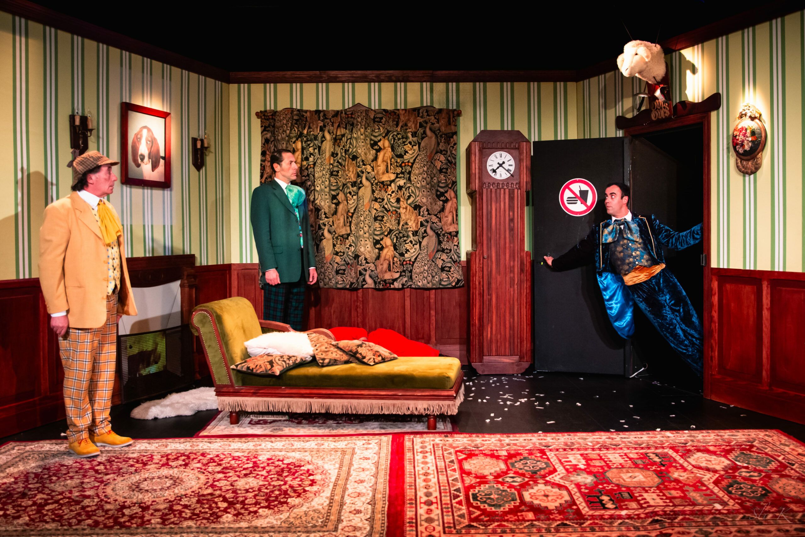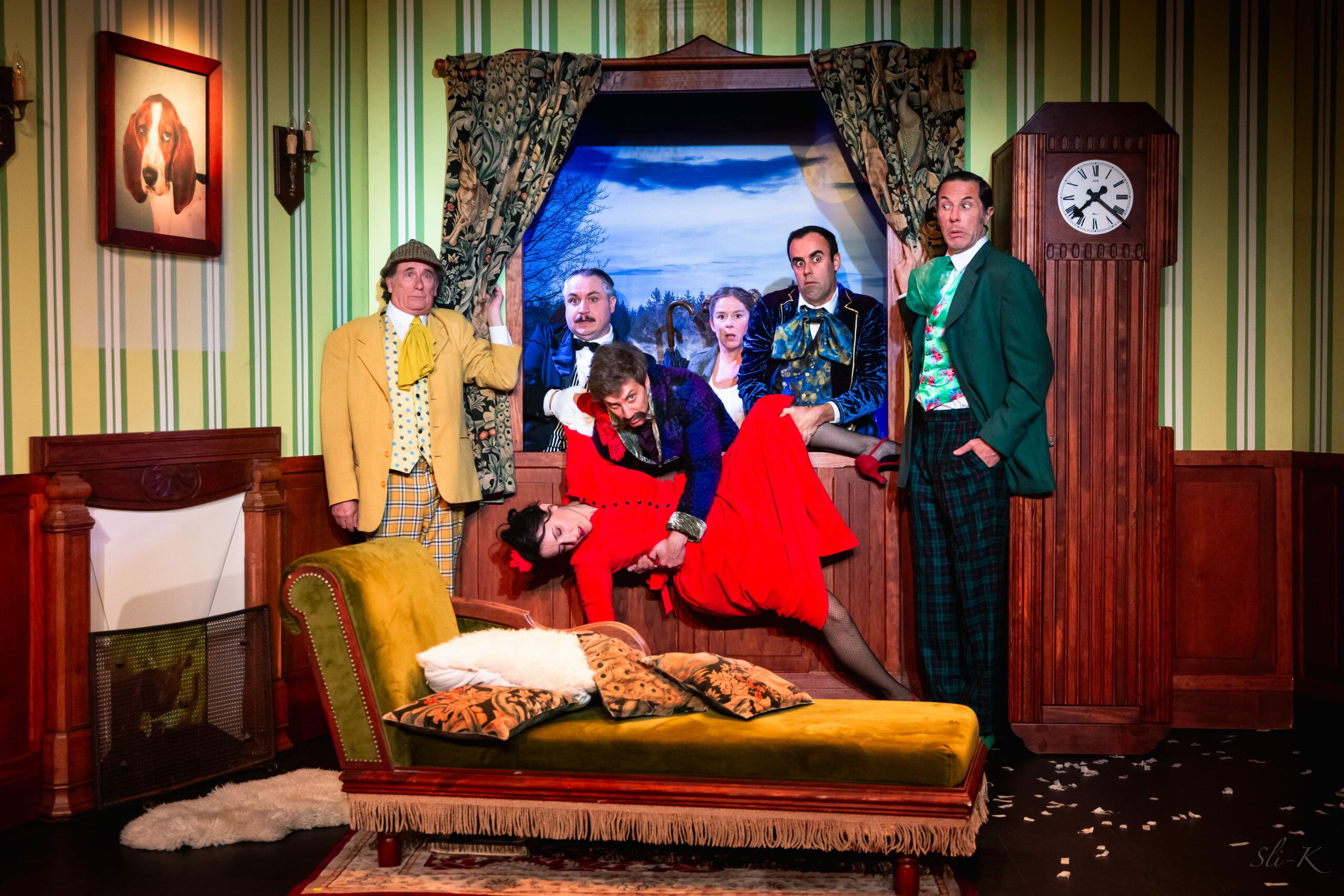 Farce burlesque,la pièce emporte le spectateur dans une tornade d’hilarité, portée par la virtuosité des comédiens et leur maîtrise du chaos, jusqu’à l’ivresse de la folie ,