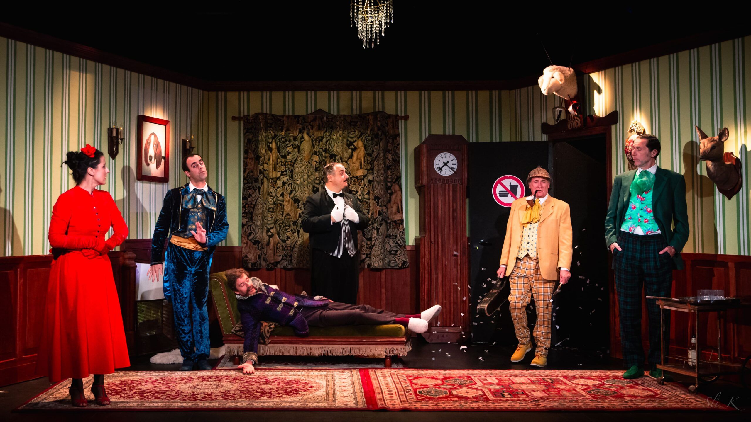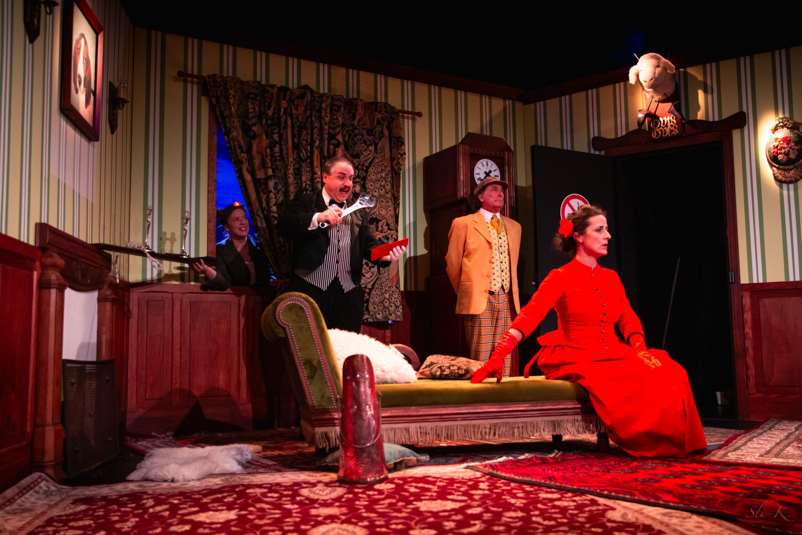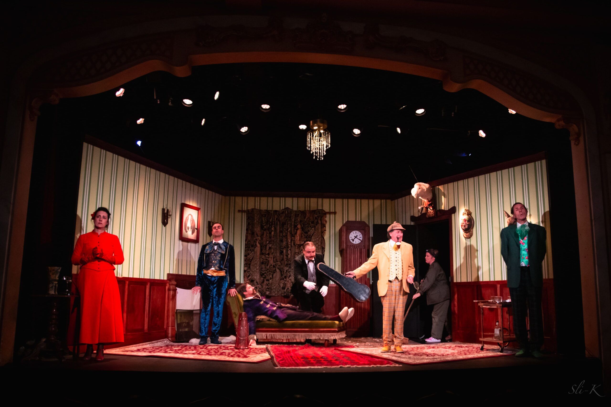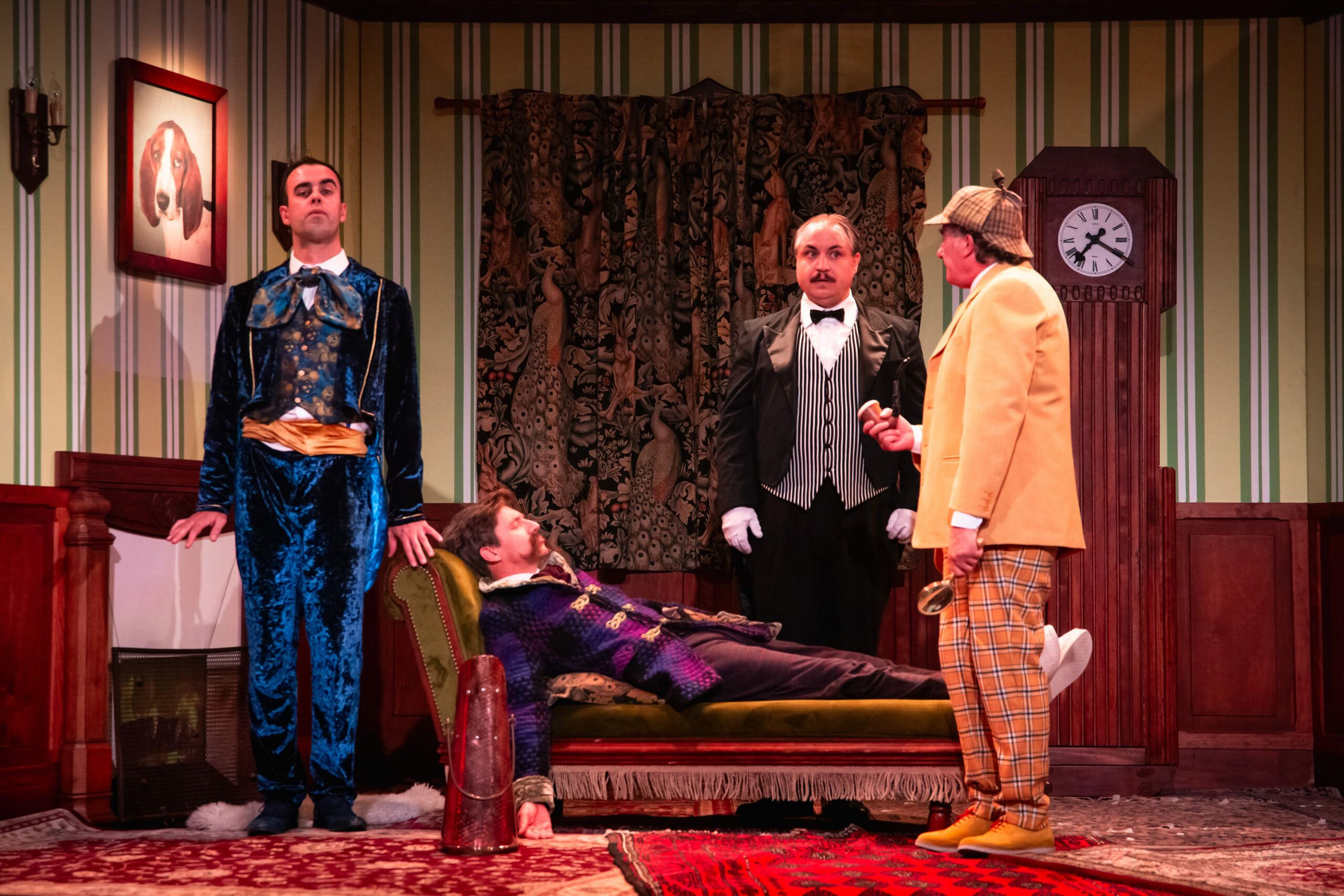 Imaginez 7 amateurs de romans noirs anglais qui décident de créer un spectacle alors qu’ils ne sont jamais montés sur scène ! Ils ont choisi une pièce inédite, un véritable chef-d’œuvre écrit par Conan Doyle lui-même (enfin, c’est ce qu’ils prétendent !)… L’action se situe fin XIXème, dans un superbe manoir, en plein cœur de l’Angleterre, lors d’une soirée de fiançailles. Les festivités vont enfin commencer quand un meurtre est commis. Chacun des invités présents dans le château devient alors… un dangereux suspect.