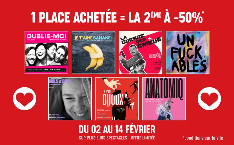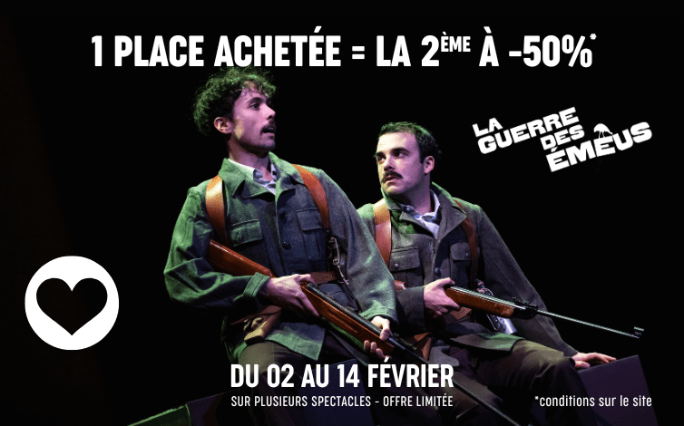 * pour tout achat de 2 places entre le 2 et le 14 février 2026, en catégorie 1 sur certaines représentations, dans la limite des places disponibles, non cumulable avec une autre offre.