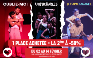 * pour tout achat de 2 places entre le 2 et le 14 février 2026, en catégorie 1 sur certaines représentations, dans la limite des places disponibles, non cumulable avec une autre offre.